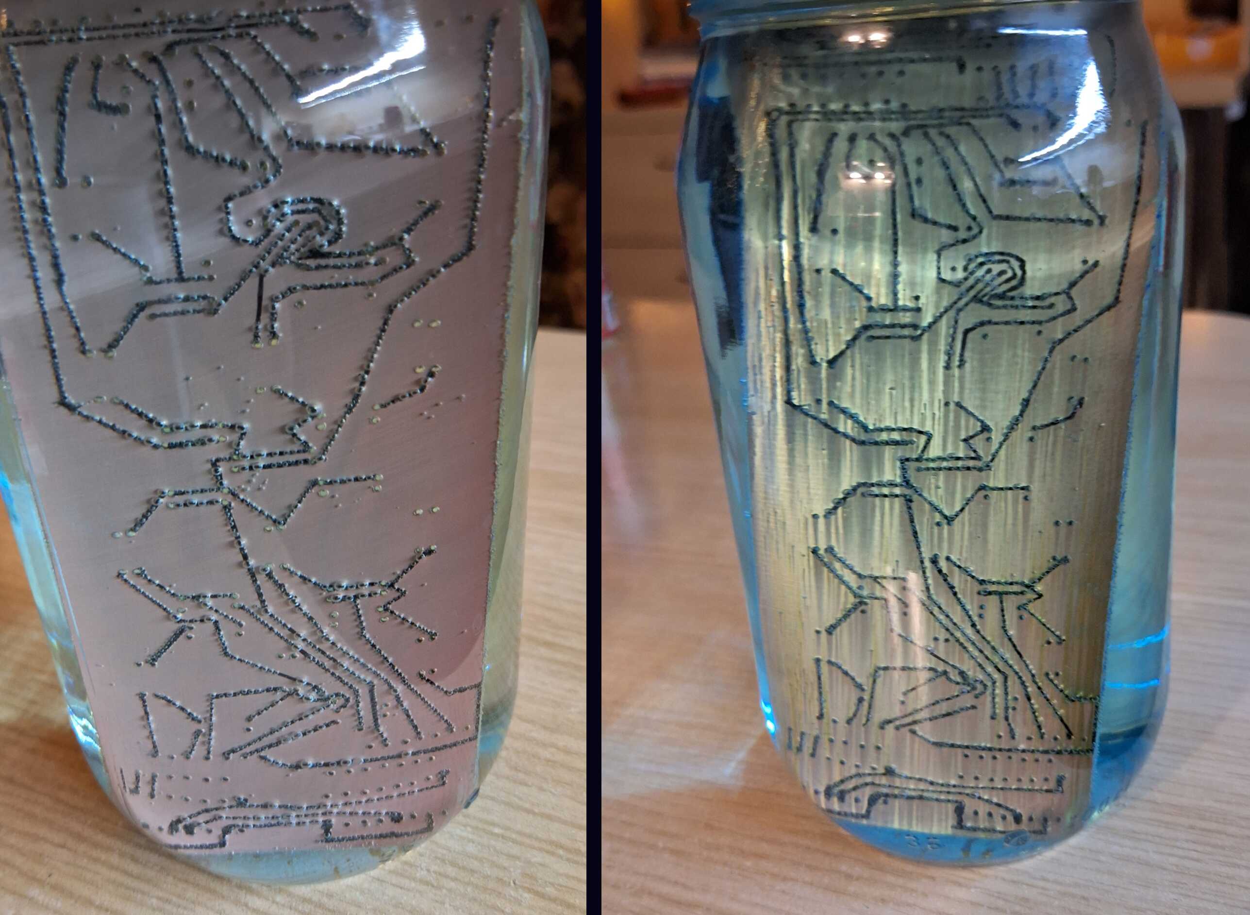 The idea is: take a copper-clad board, put ink on it (say, with a black